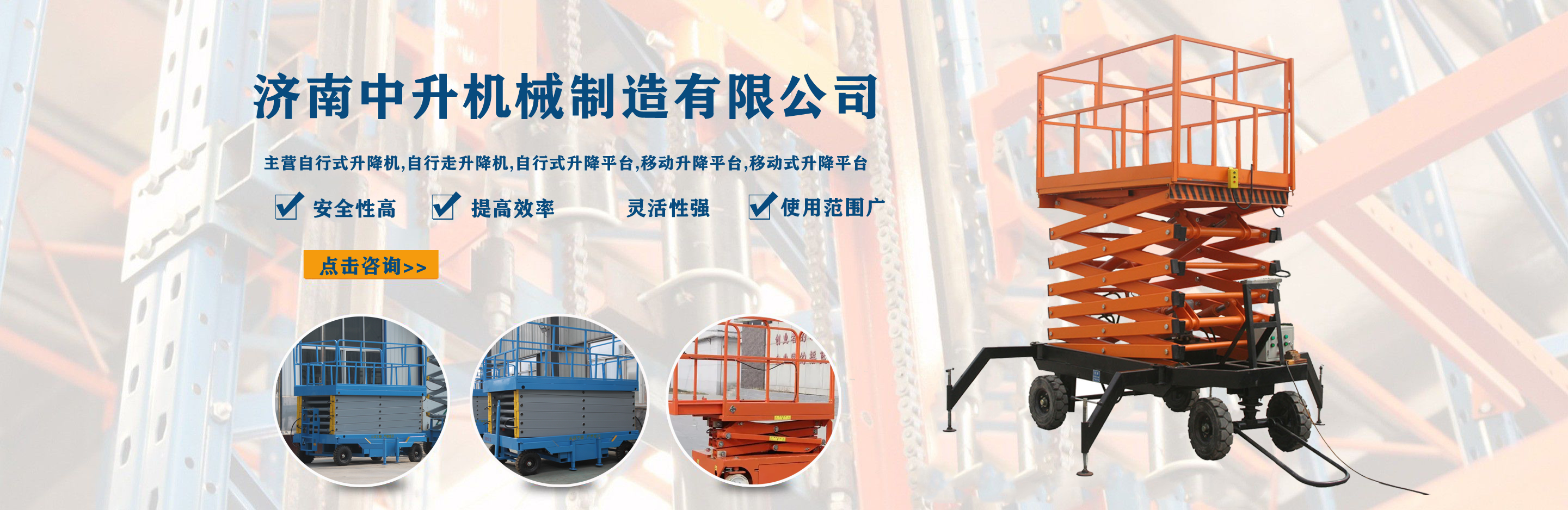 濟(jì)南中升機(jī)械制造有限公司主營自行式升降機(jī),自行走升降機(jī),自行式升降平臺(tái),移動(dòng)升降平臺(tái),移動(dòng)式升降平臺(tái)等產(chǎn)品,產(chǎn)品廣泛用于廠房維護(hù)、工業(yè)安裝、設(shè)備檢修、物業(yè)管理、倉庫、航空、機(jī)場(chǎng)、港口、車站、加油站、體育場(chǎng)、展覽館等多種行業(yè)和場(chǎng)所, 公司設(shè)備精良、工藝合理、檢測(cè)手段齊全,技術(shù)力量充足,公司創(chuàng)立伊始即本著“專注、專心”的經(jīng)營理念,依托技術(shù)團(tuán)隊(duì)優(yōu)勢(shì)和設(shè)備硬件保障,全力打造良心的升降平臺(tái)企業(yè)。 我公司始終以“品質(zhì)為本,服務(wù)至上”作為企業(yè)宗旨。只要你訂購了我公司的產(chǎn)品,無論你身處何方,我們都會(huì)及時(shí)派出技術(shù)人員為你服務(wù)!...